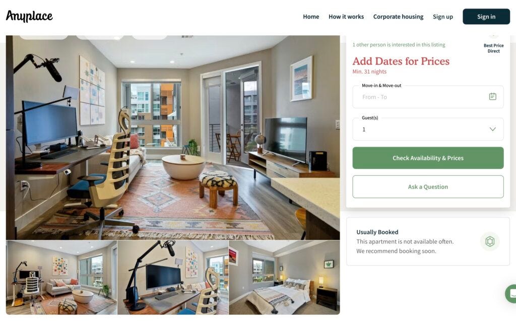 Anyplace 服務在 2017 年上線,主要服務內容是提供適合遠端工作的短租公寓,目前的房源主要在美國西岸。